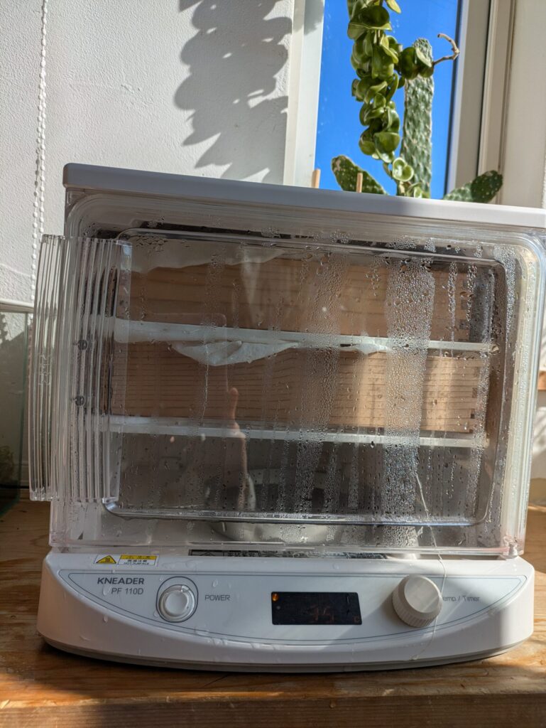 麹作りと聞くと難しそうに感じるかもしれませんが、温度と湿度を管理してくれる保温器があれば、意外と簡単に挑戦できます。私の作業は、基本的には温度チェックと麹をほぐすこと、そして洗い物くらいのもの。約3日間かかりますが、この待つ時間もまた楽しいものです。